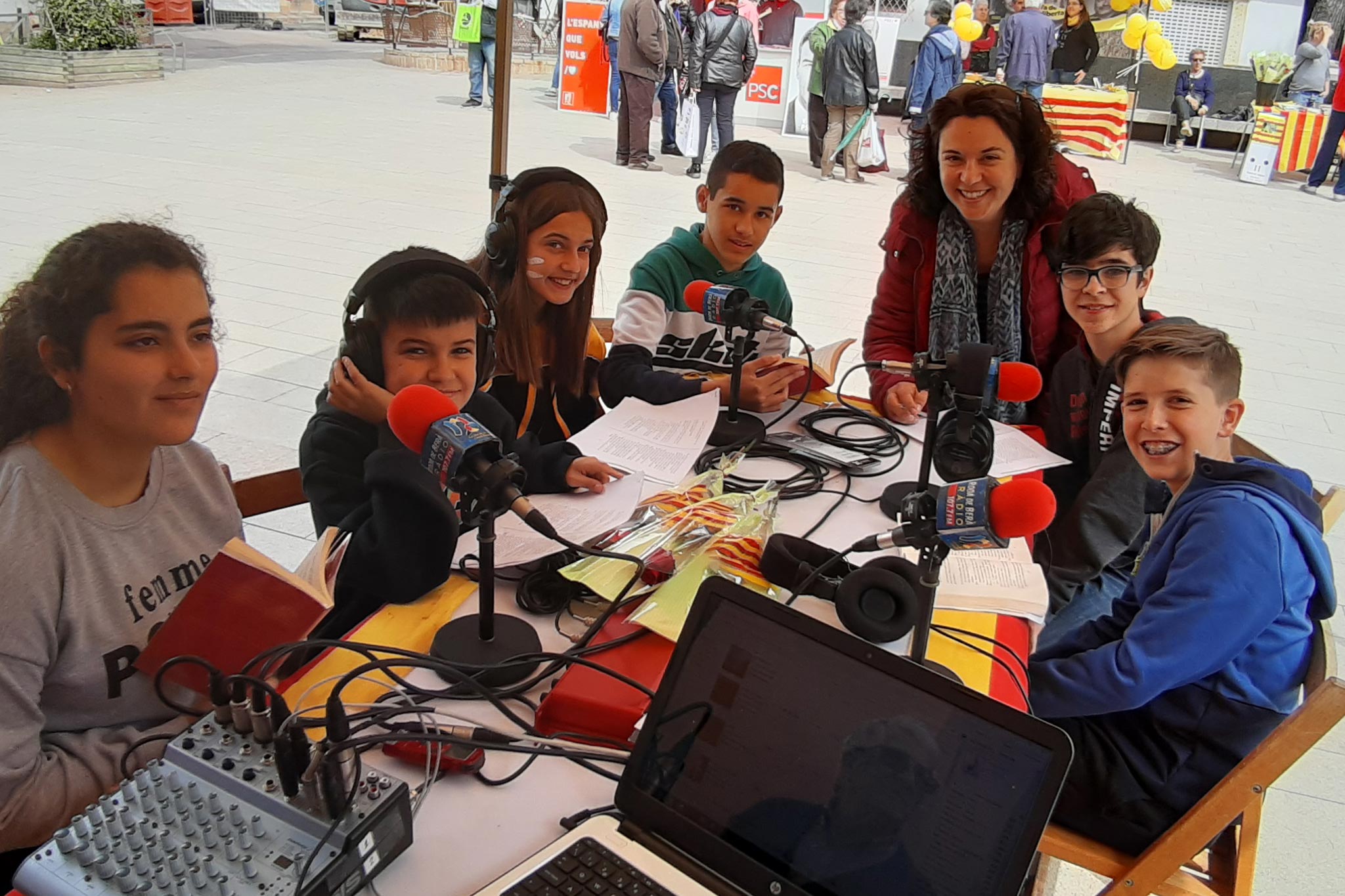 Roda de Berà Ràdio també va ser present a la plaça, com cada any, fent el programa A Mig Matí, conduit per Sònia Camí amb la col·laboració al micròfon de Rafel Garcia i el tècnic de so, Leo Loza. Per a l’emissora mòbil hi va passar l’alcalde de Roda de Berà, Pere Virgili, diversos regidors de la corporació, convidats del teixit associatiu rodenc, col·laboradors de la ràdio, i els alumnes de les escoles Salvador Espriu, El Cucurull i l’Institut Roda de Berà, els quals van fer lectura de poemes i fragments. Dels centres docents també hi havia paradetes, a càrrec de les AMPA, on es venien llibres de segona mà i roses amb l’objectiu de recaptar fons per als viatges de final de curs dels alumnes. Alguns partits polítics també van aprofitar l’ocasió per posar la seva parada a la plaça.