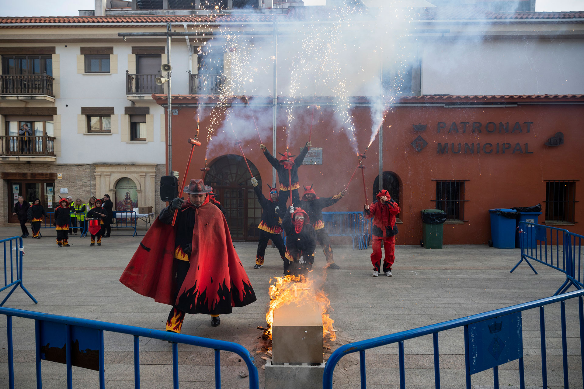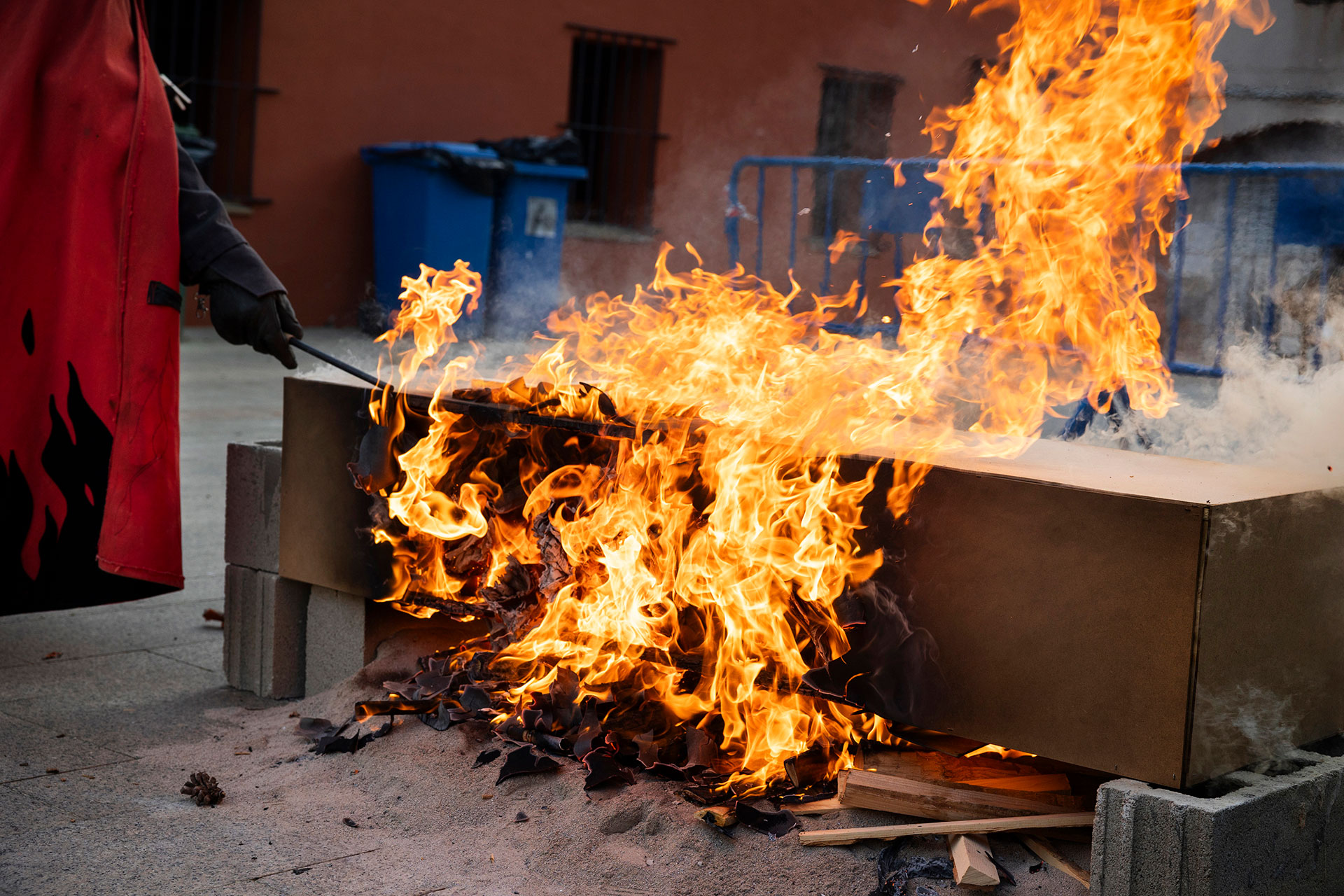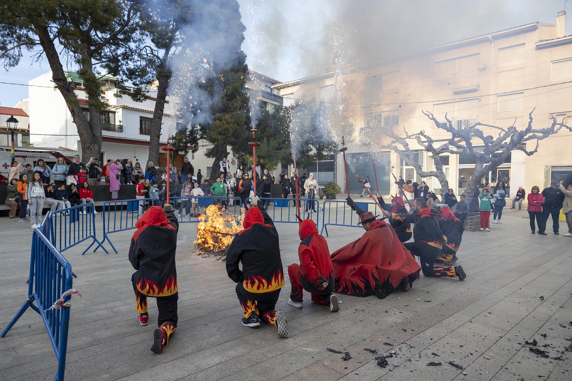 Abans de la seva crema, el Ball de Diables va fer una petita actuació amb pirotècnia i una reverència final davant el Rei, la qual va servir per encendre la pira sobre la que descansava.