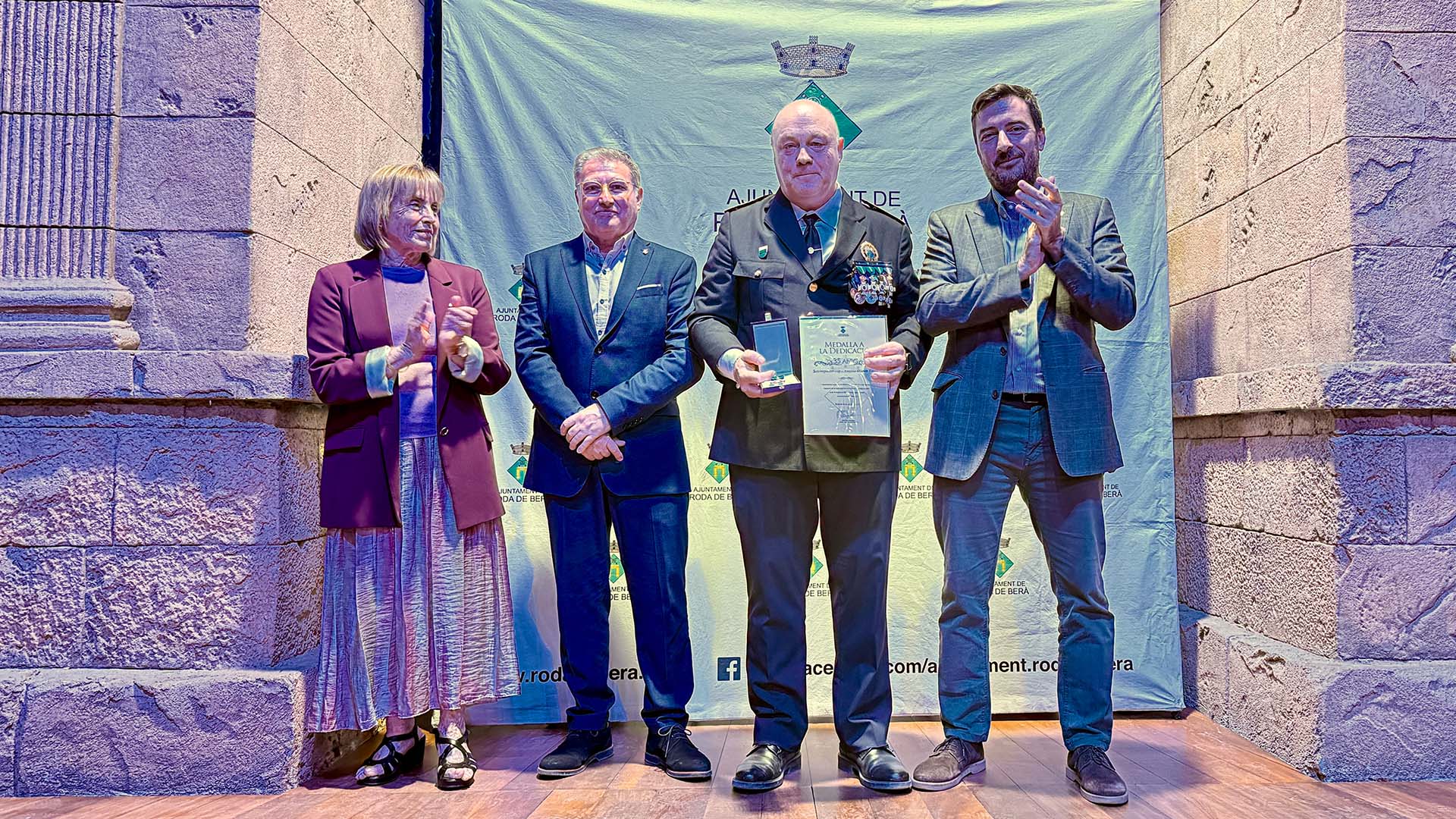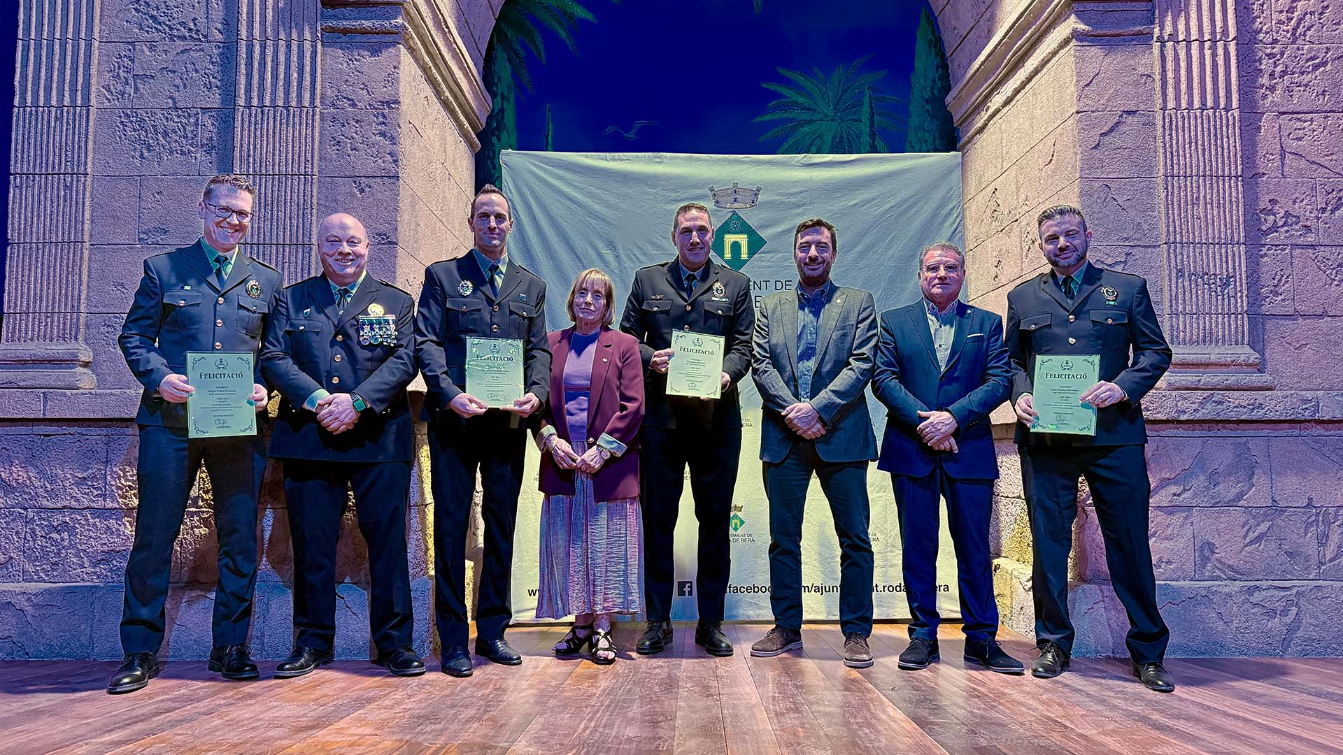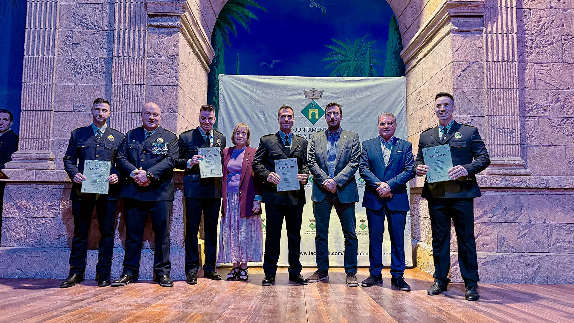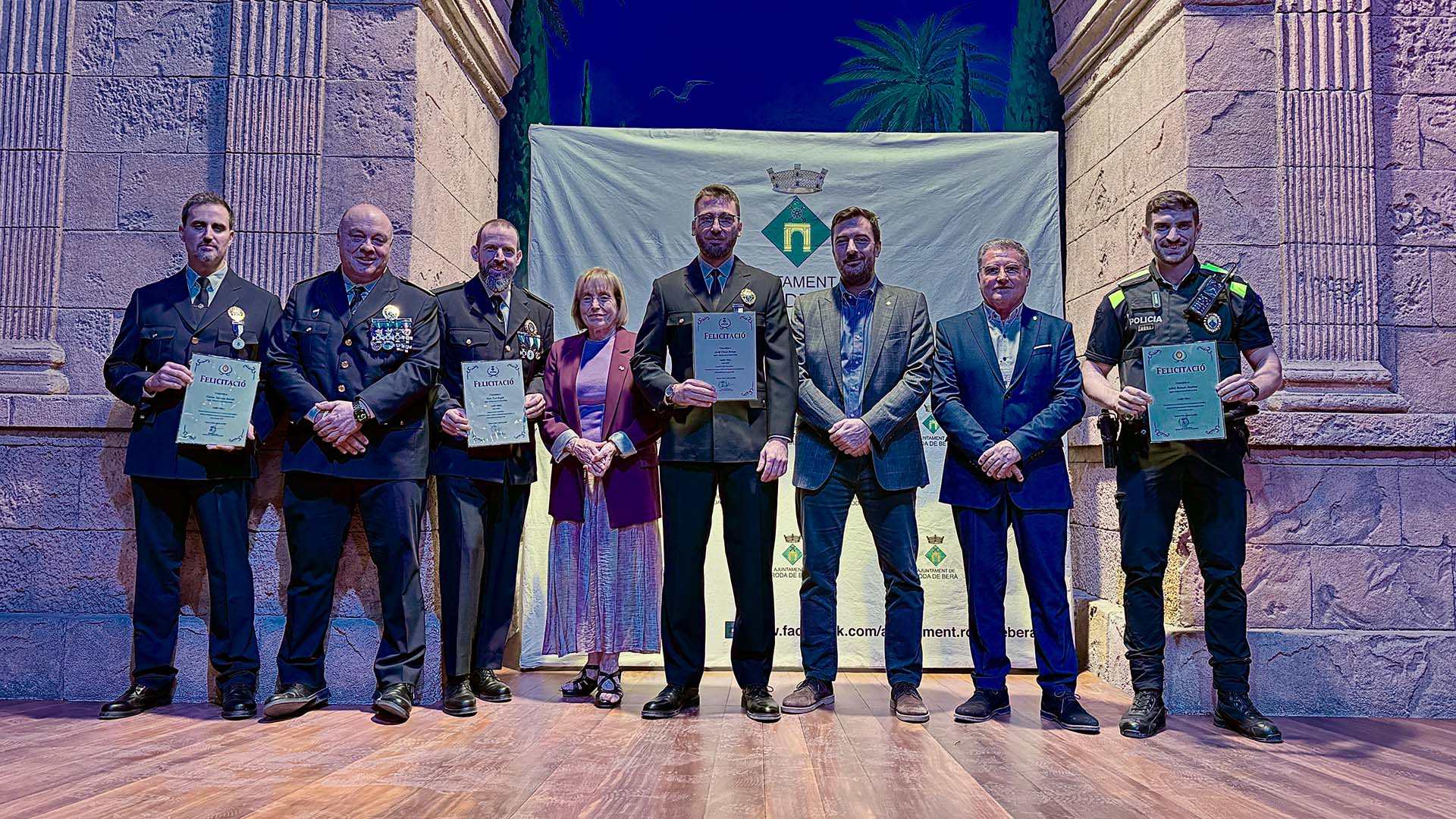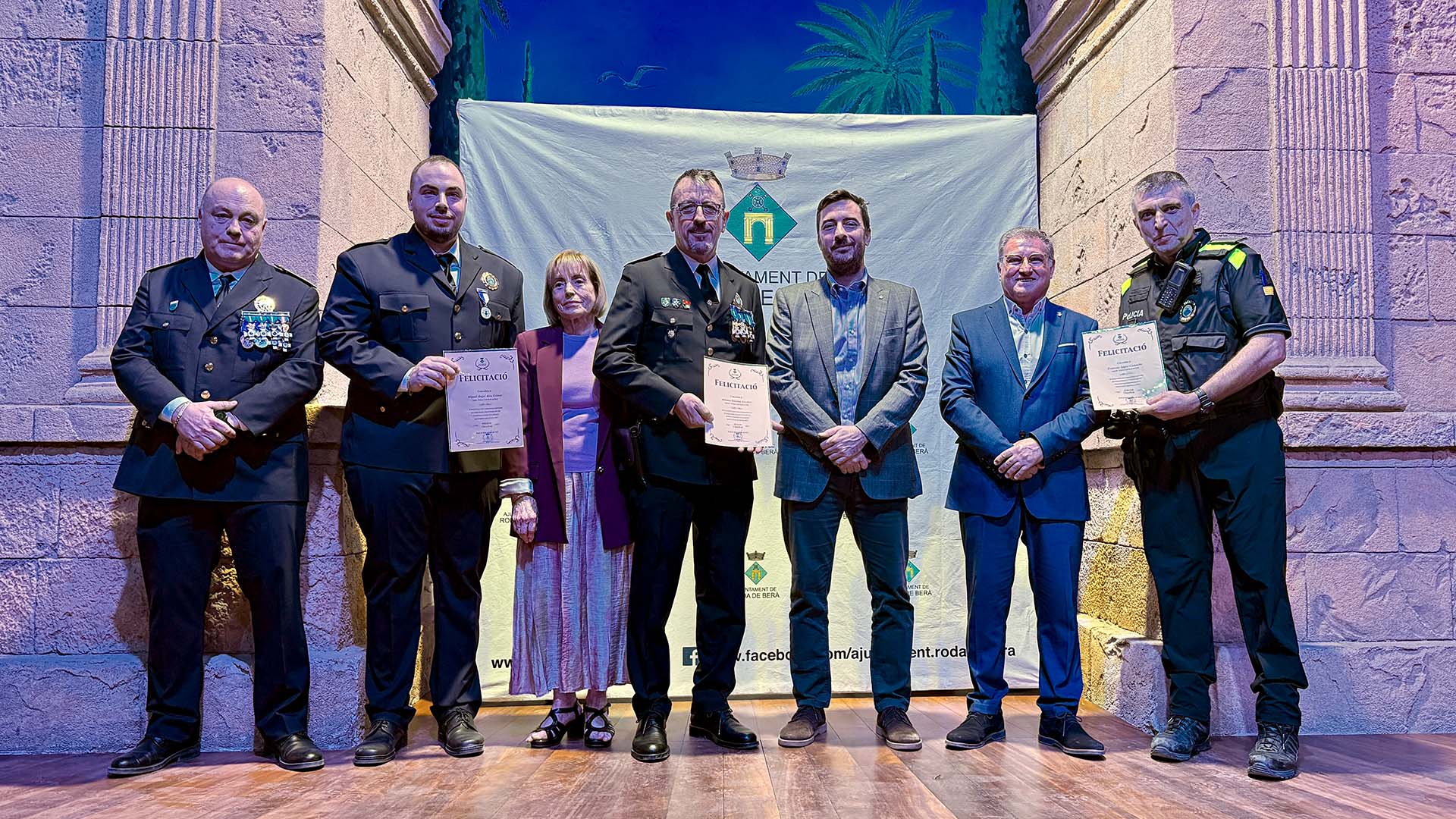 A continuació, s’ha iniciat el lliurament de medalles, diplomes i felicitacions, fins prop d’una vuitantena, amb la presència a l’escenari de l’alcalde; del cap de la Policia Local rodenca; del director general de Coordinació de les Policies Locals; i de la primera tinent d’alcalde, Teresa Ferré.