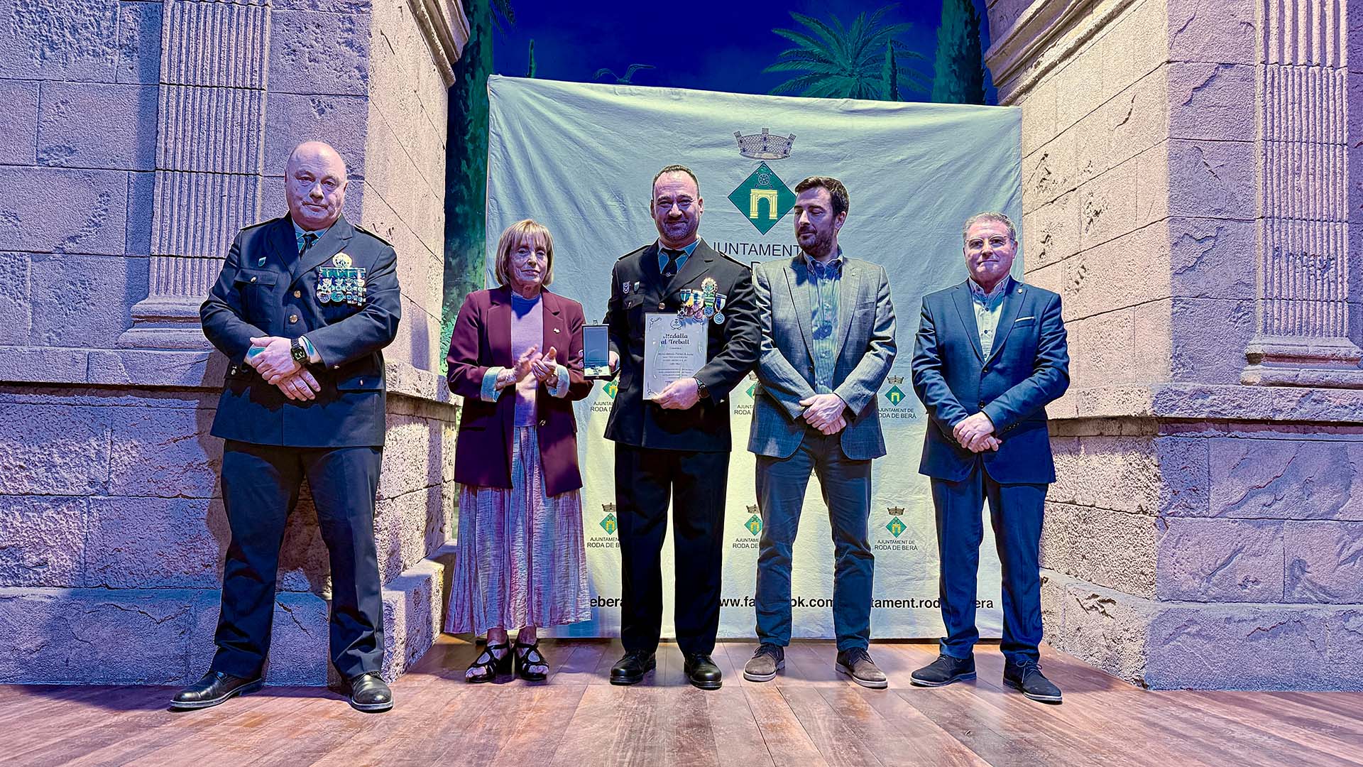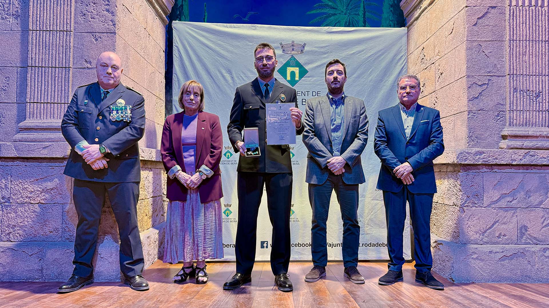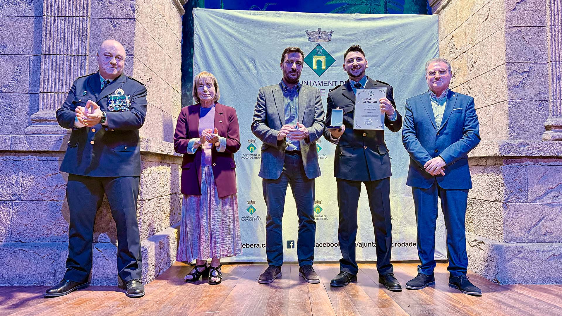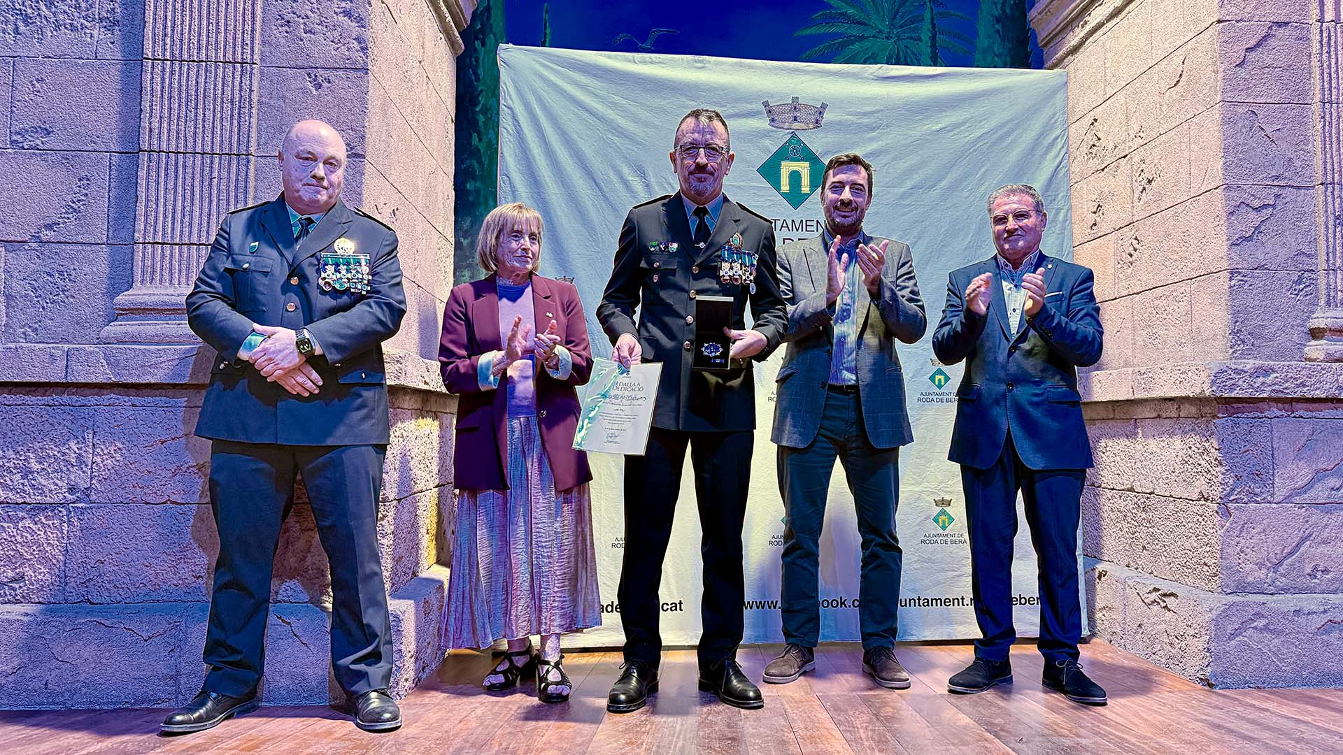 A continuació, s’ha iniciat el lliurament de medalles, diplomes i felicitacions, fins prop d’una vuitantena, amb la presència a l’escenari de l’alcalde; del cap de la Policia Local rodenca; del director general de Coordinació de les Policies Locals; i de la primera tinent d’alcalde, Teresa Ferré.