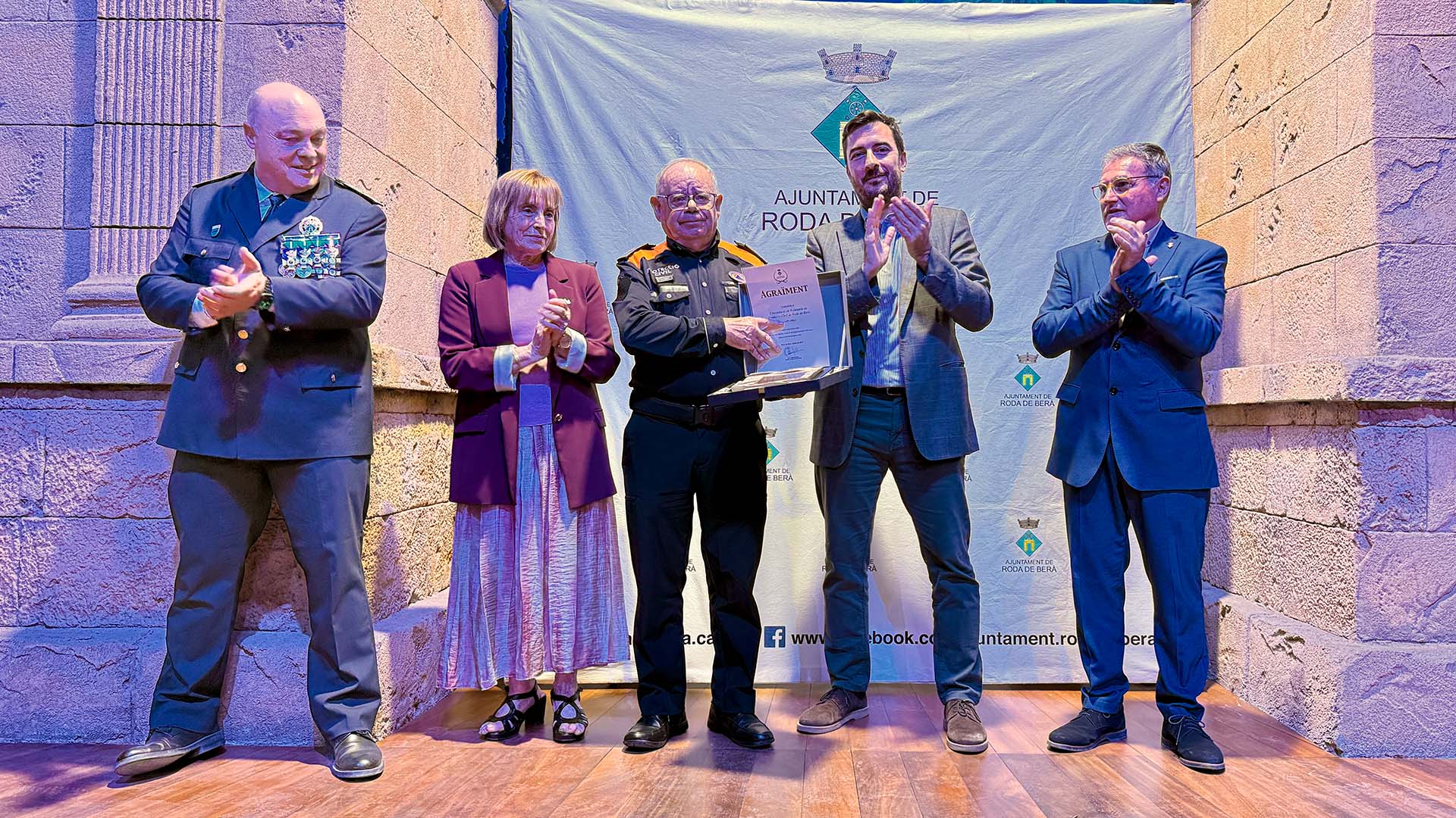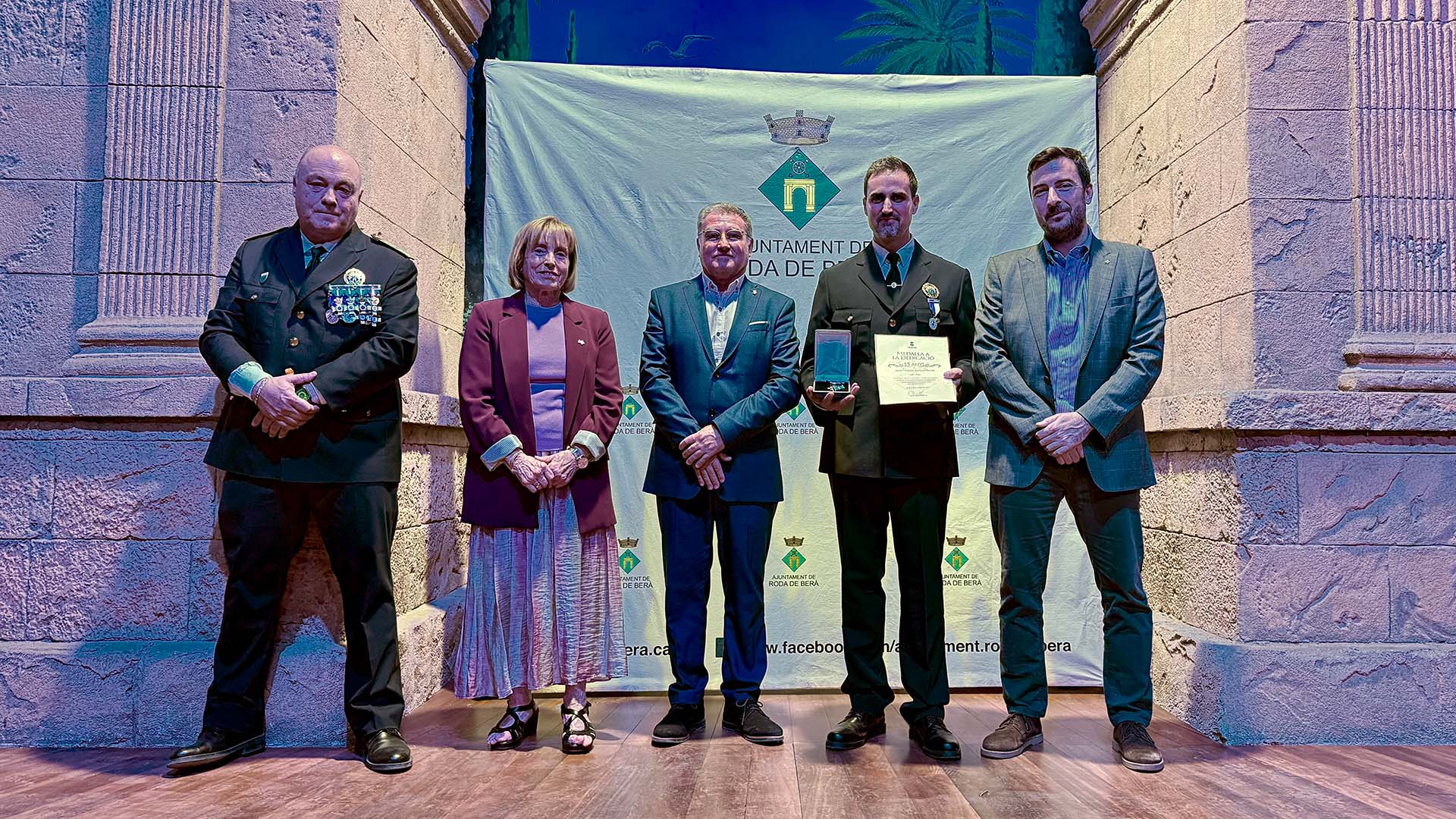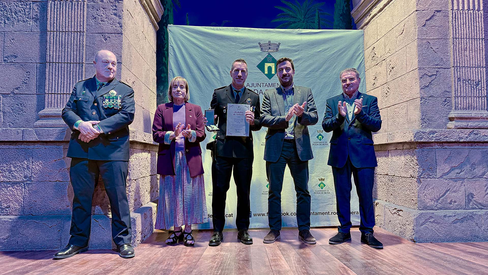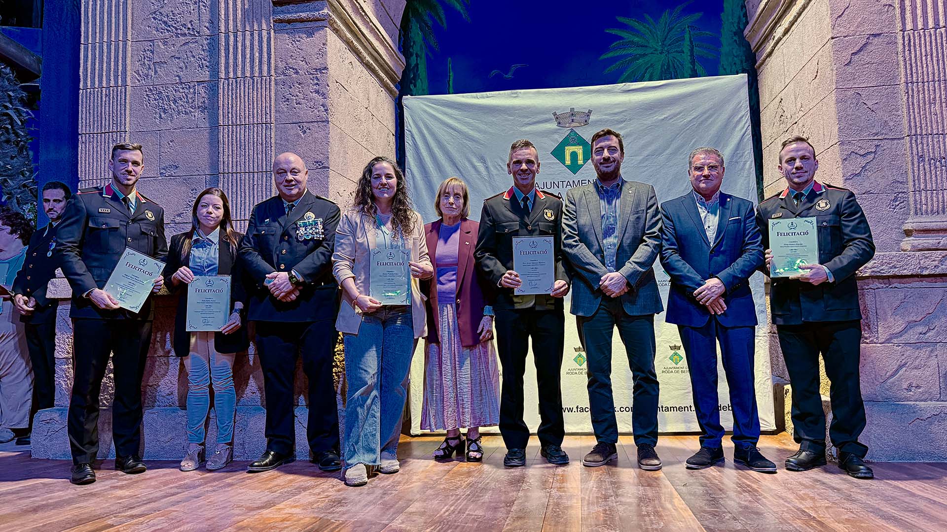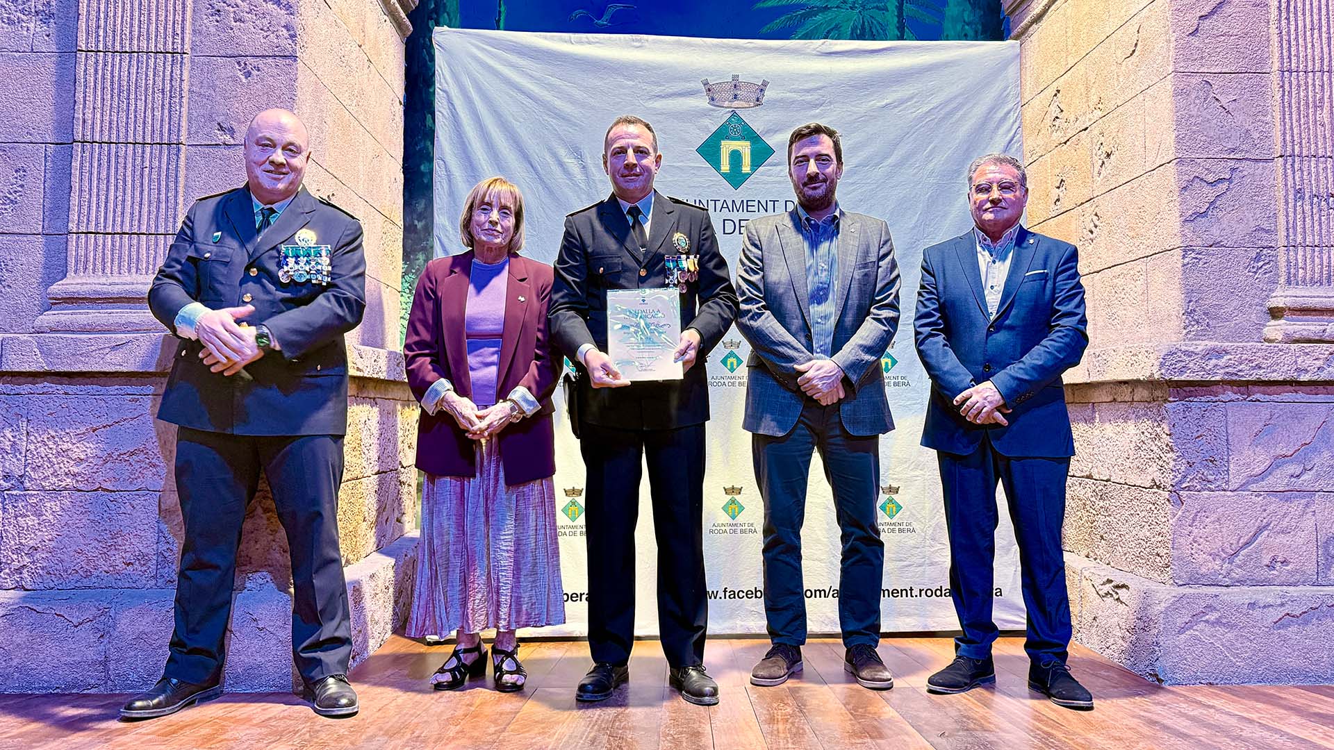 A continuació, s’ha iniciat el lliurament de medalles, diplomes i felicitacions, fins prop d’una vuitantena, amb la presència a l’escenari de l’alcalde; del cap de la Policia Local rodenca; del director general de Coordinació de les Policies Locals; i de la primera tinent d’alcalde, Teresa Ferré.