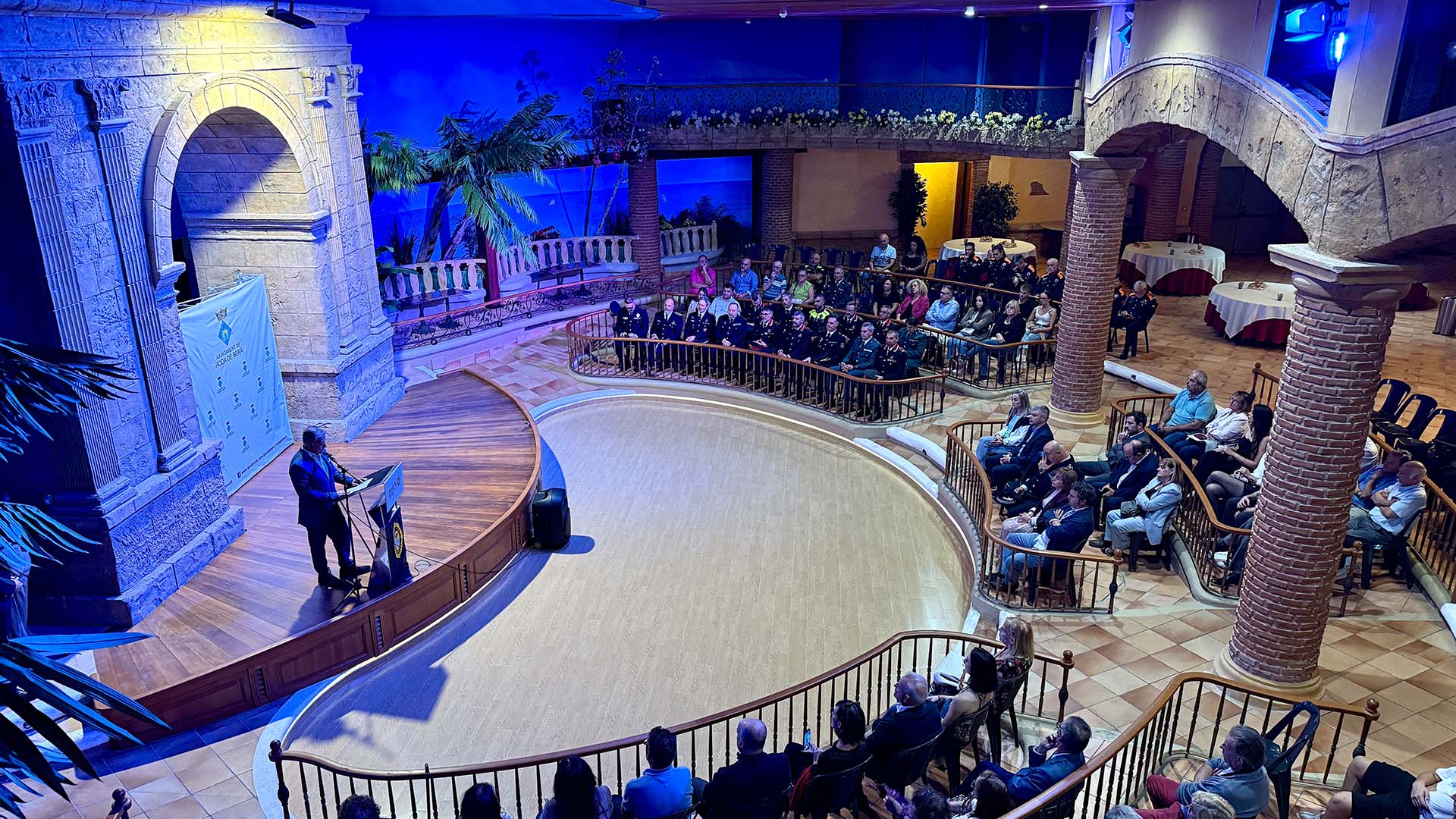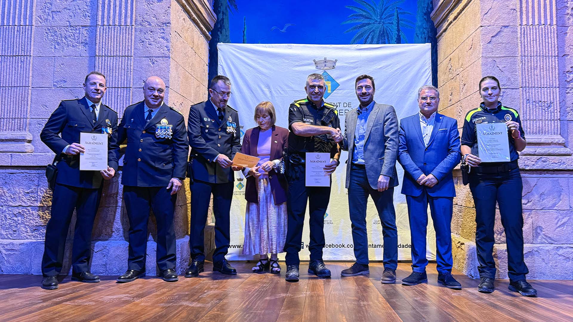 Seguidament, autoritats, agents, comandaments, representants d’altres cossos policials amb competències al municipi, convidats, representants d’entitats, familiars, amics i amigues, han omplert la sala Gala del càmping, presidida per un gran Arc de Berà a escala i decorada per a l’ocasió.
