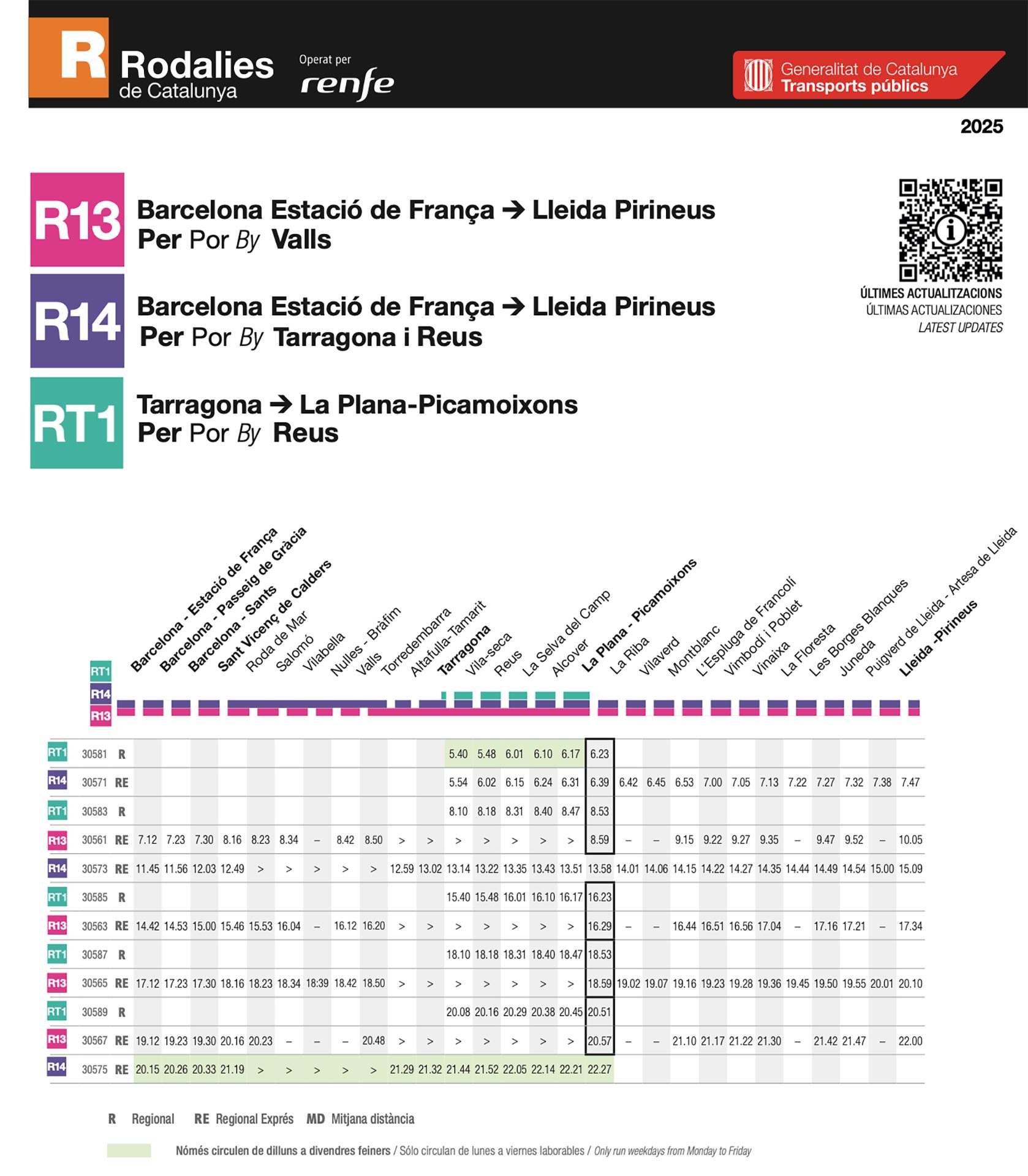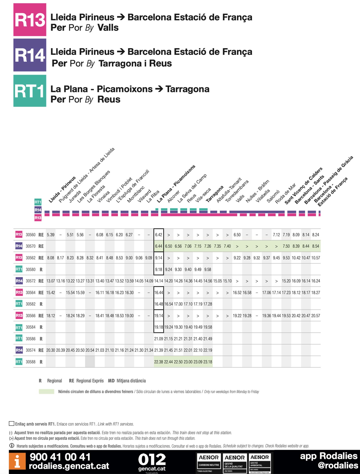 A partir del dissabte 22 de novembre es reprogramaran els serveis de les línies R13, R14, R15, R16, R17, RT1 i RT2 de Rodalies de Catalunya.